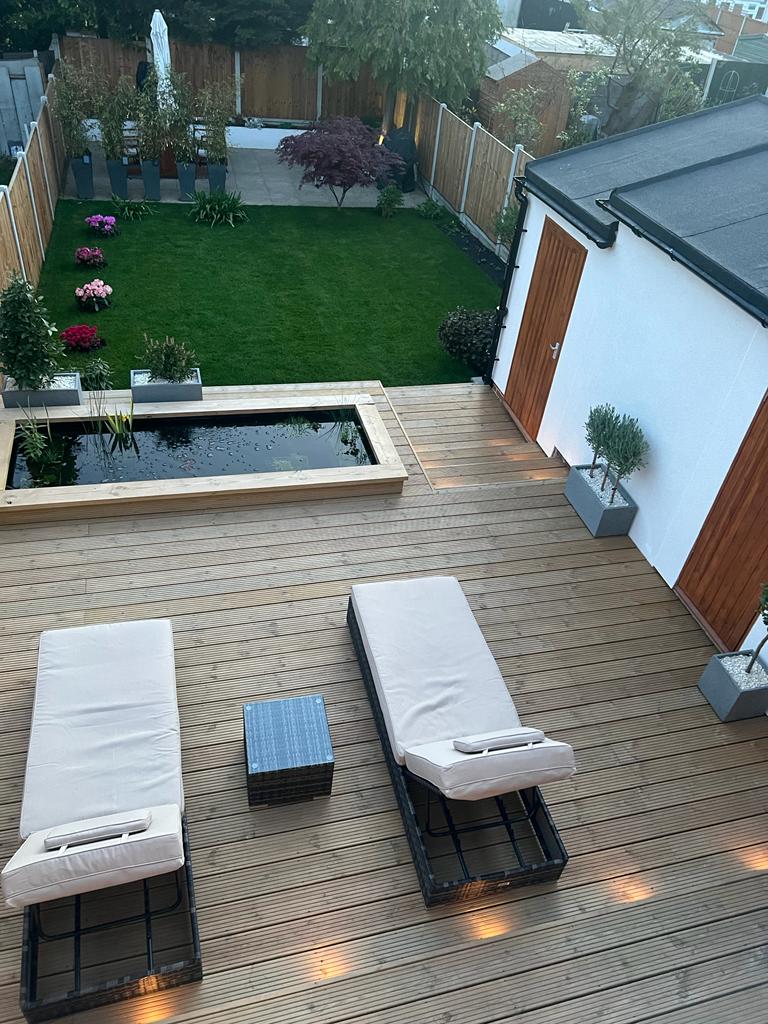 “Wow!” This is the reaction we regularly get when showing family and friends our new garden designed and built by Adam and his team at ACH - Paul, Ben and Jack. The project began at the end of May this year (2024) and lasted for about 9 weeks, as planned. The team worked in all weathers ranging from torrential rain to blazing hot temperatures of 30 degree plus. They worked so hard providing highly professional workmanship throughout, and their work ethic was second to none. They always arrived on time, worked a full day and cleared up the site before they left each evening, we couldn’t have wished for a better crew. We wanted a contemporary garden with different ‘zones’ where we could make the best of our averaged sized East facing garden. The zones included a dream Koi Pond with glass panels on three sides, a Japanese style garden and a small, sheltered coffee area. They also designed a very generous patio area which is a great suntrap ideal for relaxing or entertaining. Although we had a vision of what we wanted, the end results have exceeded our expectations. Thank you so much everyone at ACH for making our dream garden come true.